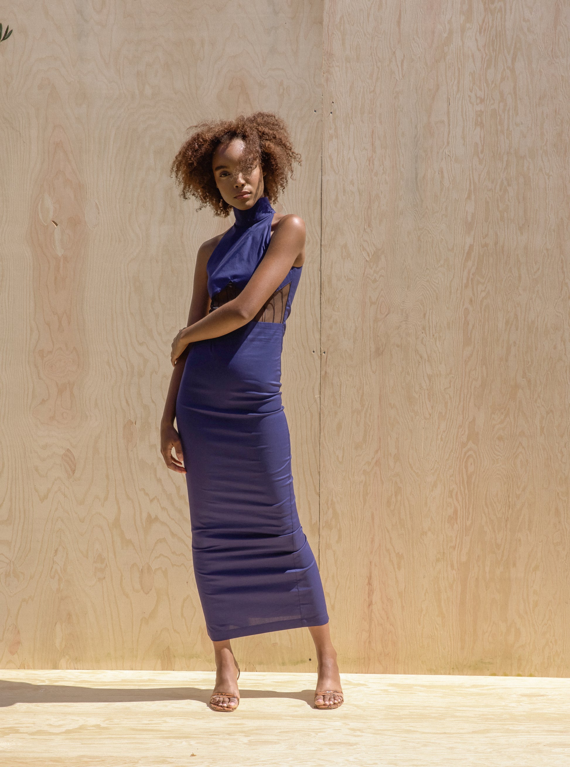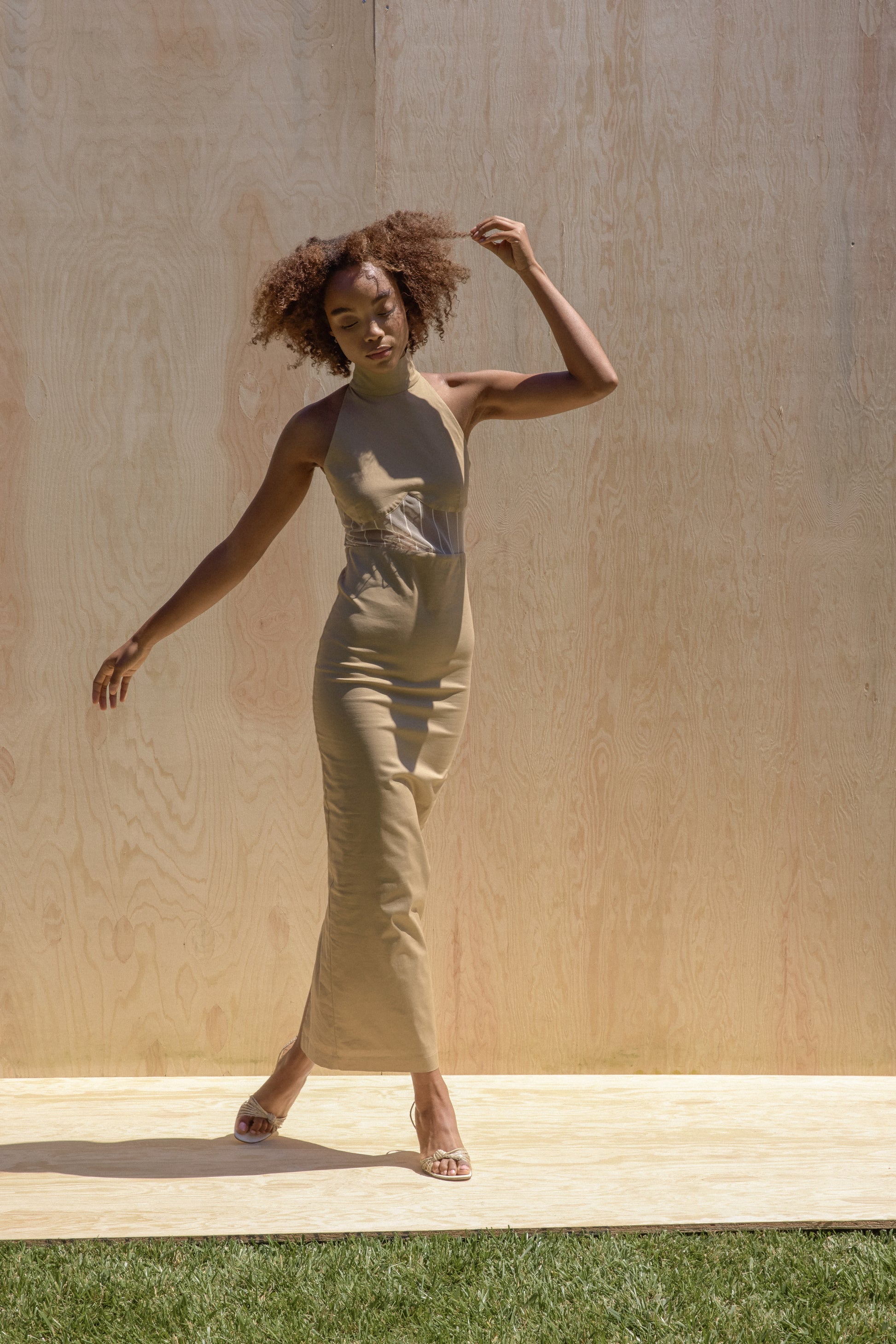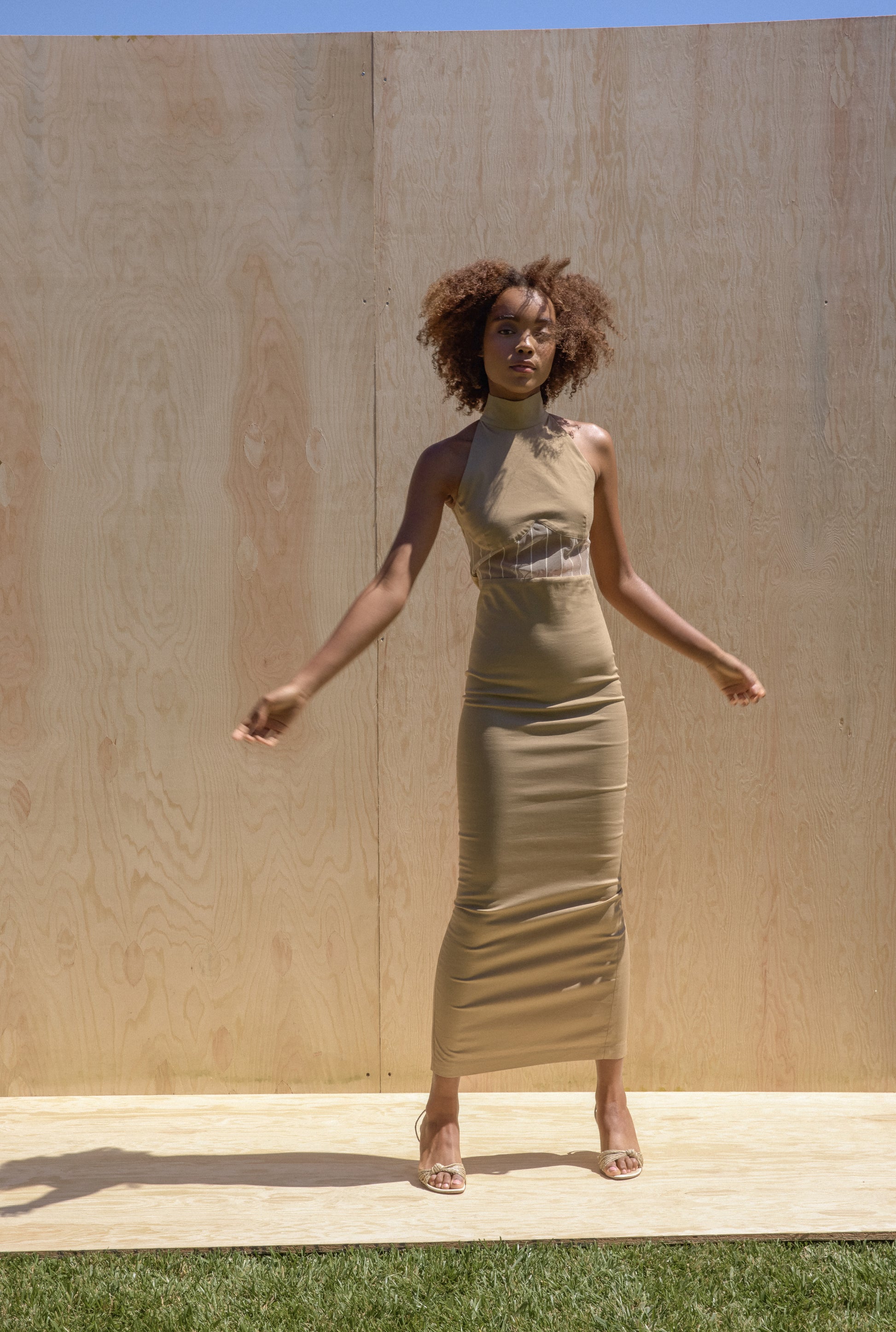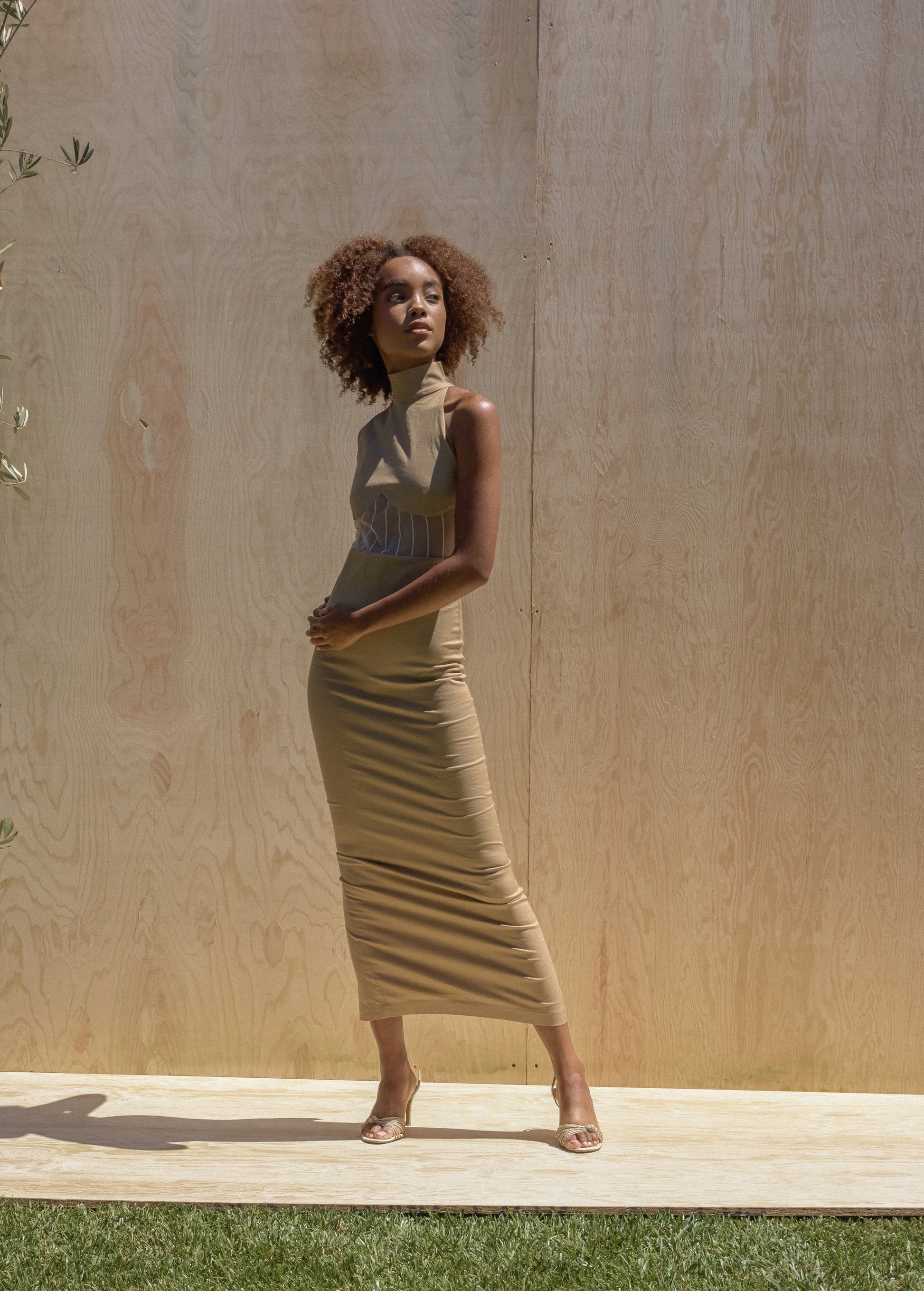 The Negev-2.0 Dress in our cotton poplin fabric is re-invented from our classic Negev Dress. Designed with a sheer mesh cut-out around the upper waist, a fitted turtle-neck and a mid-high slit in the back making this form-fitting dress a must have this season.